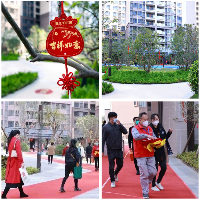 每棟的陽(yang)臺上都(dou)掛滿了中國(guo)結(jie),在(zai)交(jiao)付(fu)現(xian)場,項目和(he)物業正在(zai)給業主舉行隆重的交(jiao)付(fu)儀式,目之(zhi)所及盡顯歸家的喜悅。