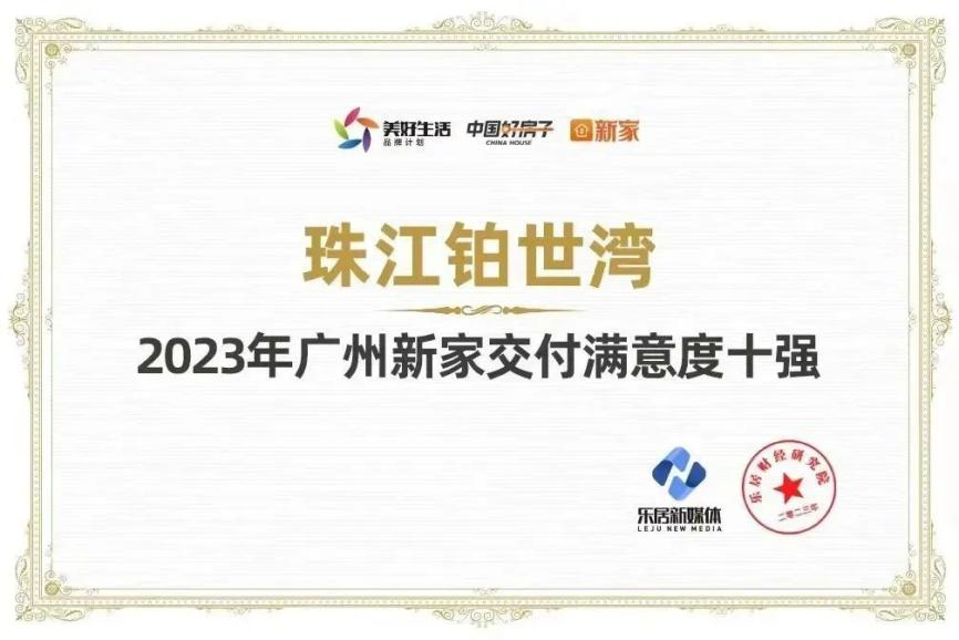 3月15日,“2023年廣州新家交付滿意度十強”名單揭曉,位于番禺萬博的珠江鉑世灣樓盤榮獲2023年廣州新家交付滿意度十強。