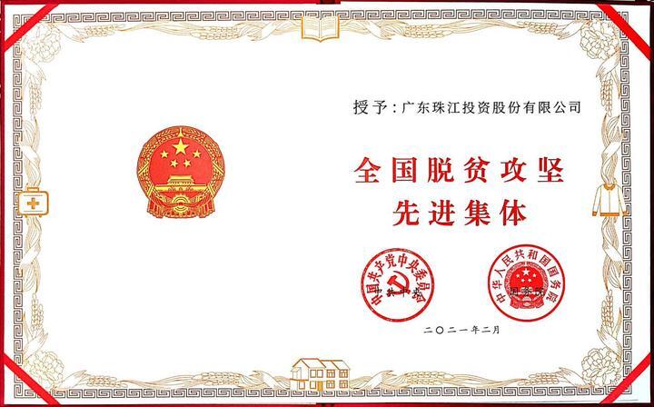 擁有高度社(she)會責任感(gan)以(yi)及在公益(yi)事業上的積極(ji)貢獻,在2021年全(quan)國脫貧攻堅(jian)總結表彰大會上,珠(zhu)江投資榮獲(huo)中共中央(yang)、國務院(yuan)授予“全(quan)國脫貧攻堅(jian)先(xian)進(jin)集體”稱(cheng)號。此外,更獲(huo)得(de)“中國企(qi)業慈善公益(yi)500強”“年度社(she)會責任貢獻企(qi)業”等殊榮。