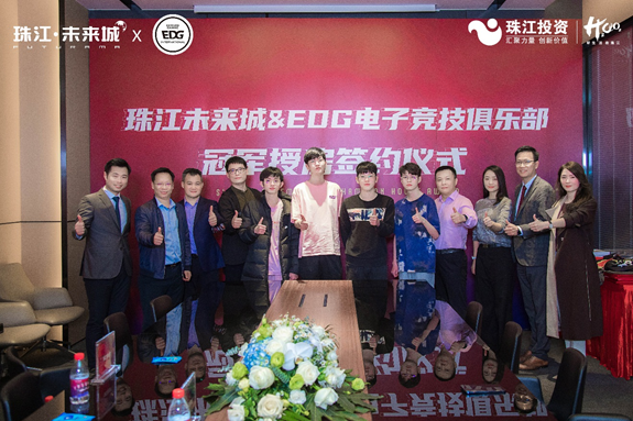 EDG戰隊于2013年9月13日在廣州成立。成立8年后,EDG在S11賽巔峰奪冠。EDG 的成功,又一次體現了廣州“敢為天下先”的精神特質。珠江投資與EDG電子競技俱樂部進行珠江未來城授房簽約儀式,提供空間支持建設電競訓練基地及粉絲驛站。