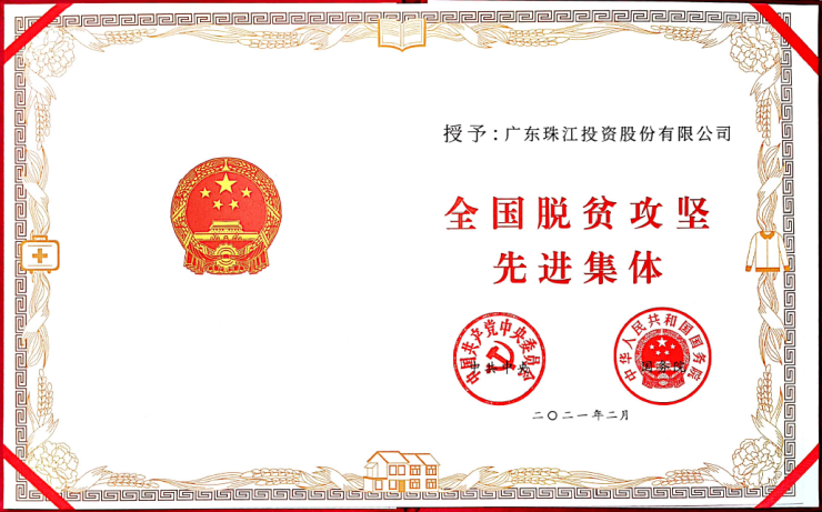 2021年全國脫貧攻堅總結表彰大會上,中共中央、國務院授予珠江投資“全國脫貧攻堅先進集體”稱號。